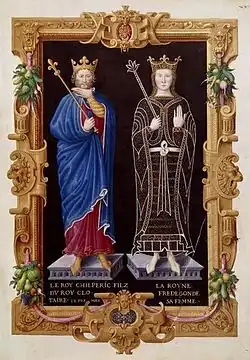 - Chilperich I. heiratet die westgotische Königstochter Gailswintha, Schwester der Brunichild. Bald darauf lässt ihr Mann Gailswintha erdrosseln, dem stattdessen an einer Verbindung mit Fredegunde gelegen ist, welche er nur wenige Tage später ehelicht.