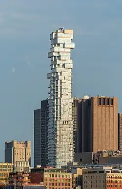 56 Leonard Street ist ein Wolkenkratzer in Manhattan in New York City. Das auch umgangssprachlich „Jenga-Tower“ genannte Wohnhochhaus entwarf das Schweizer Architekturbüro Herzog & de Meuron.