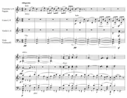- Imitationen entstehen hauptsächlich durch den Wechsel kurzer melodischer Phrasen zwischen den Instrumenten (z. B. in T. 67–93) und nicht, wie ansonsten üblich, durch kontrapunktische Techniken.
