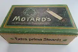 Der Arzt und Hygieniker Adolphe Motard (1804–1882) hatte 1831 zusammen mit dem befreundeten Mediziner Adolphe de Milly in Paris in der Nähe der Place de l’Étoile eine kleine Kerzenfabrik gegründet. Ihr Ziel war es, die Entwicklung der Stearinkerze voranzutreiben und damit die Vorteile der traditionellen Kerzenrohstoffe zu vereinen: die niedrigen Kosten von Talg und das tropffreie Verbrennen von Bienenwachs. Das auf zehn Jahre befristete Patent vom 10. Dezember 1831 auf die Verseifung mit Kalk lief auf beider Namen.[1] Für ihre bougie de l’Étoile erhielten sie 1833 von der Gesellschaft zur Förderung der nationalen Industrie (Société d’Encouragement pour l’industrie nationale) eine Silbermedaille.[2] Die alleinige Erwähnung de Millys bei der Industrieausstellung von 1834[3] deutet darauf hin, dass Motard das Unternehmen zu diesem Zeitpunkt bereits verlassen hatte. Einige Jahre später übersiedelte er nach Berlin, wo die Stearinkerzenproduktion noch in den Kinderschuhen steckte.