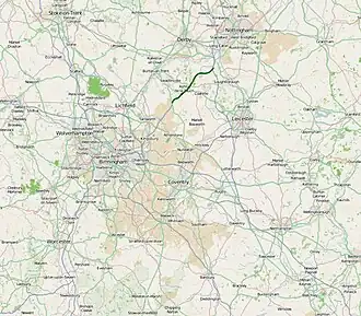 | Straßenbeginn: | M42 bei Appleby Magna |