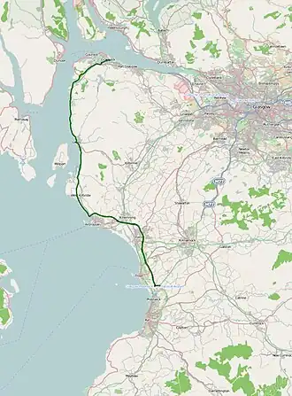 Die Straße schließt in Greenock an die A8 road an und schneidet anders als die A770 road die nordwestliche Spitze der Grafschaft Inverclyde ab. In Largs zweigt die A760 road in das Hinterland ab. Bei Ardrossan verlässt die Straße die Küste und führt mit getrennten Fahrbahnen als dual carriageway um Irvine herum; dabei kreuzt sie die A71 road. Sie folgt weiter der Küste in südlicher Richtung in einigem Abstand, bis sie nördlich von Monkton auf die kurze A79 road trifft und nach rund einem Kilometer an der A77 road endet.