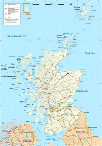 | Straßenende: | zwischen Portsoy und Banff (57° 39′ 0″ N, 2° 38′ 20″ W) |