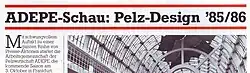 - ↑ Ute B. Fröhlich: ADEPE-Schau 1986, Frankfurt. In: Pelzreport Kurt Lindemann, 1. September 1986, S. 2–3.