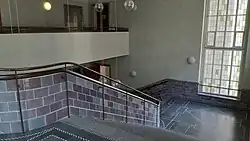 Während der plastische Schmuck, „wie gebrochen ovale und quadratische Putzspiegel und ungegenständliche Ornamente“ typische Elemente der Reformbaukunst wären, nähme vor allem die Gestaltung des Turms Elemente des Art déco vorweg.[1] Die Höhe des Dachreiters beträgt elf Meter über dem First und endet mit einer Erdkugel von einem Meter Durchmesser. Diese wird von kleinen Falkenköpfen eingefasst. In der Mitte des Turmaufbaus befindet sich eine Uhr mit aus bunten Mosaiksteinen hergestellten Zifferblättern. Mit der Sanierung des Gebäudes wurden auch mehrere Nistkästen für Turmfalken am Dach angebracht.[2]