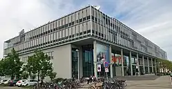 Den Eingang des Gebäudes schmückt seit 2006 der Giraffenmann, eine Plastik von Stephan Balkenhol.[9]