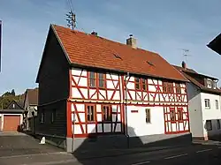 Das lang gestreckte Fachwerkhaus wurde gemäß der inschriftlichen Datierung auf der straßenseitig angebrachten Holztafel um 1718 erbaut. Der zweizonige Bau wurde schon früh um eine dritte Zone nach Südwesten erweitert. Das repräsentative Sichtfachwerk weist in der Brüstungszone ein reich figuriertes Fachwerk mit geschweiften Streben, Feuerböcken und Rauten auf, das sich im späteren Anbau fortsetzt.