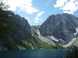 Der Aasgard Pass, Blick von Nordwesten über den Colchuck Lake