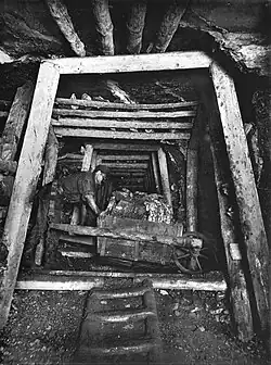 Durch den Abbau wird der eigentliche Zweck des Bergbaus erfüllt.[6] Dabei gilt als oberster Grundsatz, dass die Lagerstätte pfleglich genutzt wird.[7] Dies bedeutet, dass die Lagerstätte möglichst vollständig ausgebeutet wird.[5] Lagerstätten, die wirtschaftlich gesehen lohnend abzubauen sind, nennt der Bergmann bauwürdig.[1] Mit Abbauproduktion als Produktionstyp wird der Abbau des Rohstoffs bezeichnet.[8] Wird beim Abbau der Lagerstätte eine Arbeitsweise verwendet, die darauf ausgerichtet ist, den augenblicklich größten Nutzen zu erzielen, ohne dabei auf die Nachhaltigkeit zu achten, so bezeichnet man dieses als Raubbau.[9] Eine große Rolle spielt beim Abbau auch die Art des Nebengesteins und dessen Eigenschaften.[7] Insbesondere beim Abbau von weichen Mineralien wie Kohle hat der Einschluss von Bergemitteln einen Einfluss auf die Höhe des Lösewiderstandes.[10] Die Härte und der Zusammenhalt des Minerals sind bestimmende Faktoren für die Gewinnbarkeit des jeweiligen Minerals.[2]