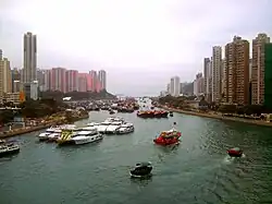 Gegenüber dem Aberdeen Harbour befindet sich die Insel Ap Lei Chau. Die Meerenge bildet den Aberdeen Channel (香港仔海峽)[Anm. 3], der als Schutzbereich für Boote bei Stürmen und Taifunen verwendet wird. Für zusätzlichen Schutz sind im Westen und Südosten des Kanals Molen aufgeschüttet.