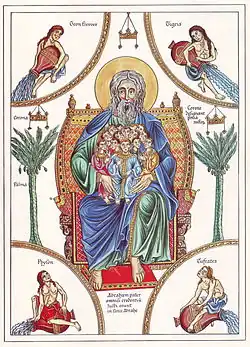 Abraham (hebräisch אֲבִירָם / אַבְרָהָם Avraham / Aviram volksetymologisch: „Vater der vielen [Völker]“ [Genesis 17,4 f.] von אַבְרָם Avram „(Der) Vater ist erhaben“,[1] aramäisch ܐܒܪܗܡ Abrohom, altjiddisch Awroham, arabisch إبرَاهِيم Ibrāhīm) ist nach dem biblischen Buch Genesis (Gen 12–25 )[2] zusammen mit seinem Sohn Isaak und seinem Enkel Jakob der erste der drei Erzväter des Volkes Israel. Er nimmt eine zentrale Stellung im Tanach oder Alten Testament ein, da laut dieser Überlieferung über Abrahams Enkel Jakob – dem Gott später auch den Namen Israel gibt – die Zwölf Stämme Israels und damit auch Jesus von Nazareth von ihm abstammen. Im Islam wiederum gelten Abraham und sein Sohn Ismael als Stammväter der Araber und damit als Vorfahren des Propheten Mohammed. Zudem wird Abraham von den Bahai als Vorfahr ihres Religionsstifters Bahāʾullāhs angesehen. Da sich sowohl Judentum, Christentum als auch Islam auf Abraham als ihren Stammvater beziehen, werden sie auch als die drei abrahamitischen Religionen bezeichnet.