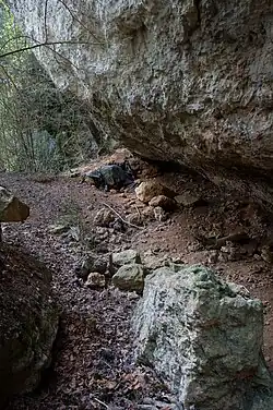 An der Basis (Schicht A) befand sich ein mit großen Flussgeröllen ausgelegter Feuerplatz (Dimension 2,5 × 1 Meter), an dem offensichtlich Beutetiere gebraten wurden. Die Anordnung der Steine lässt hierbei eine Art Grill vermuten.