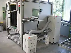Je nach Anwendung sind die Absaugeinrichtungen in einem Gehäuse platziert, das die Arbeitsstelle umschließt, was vor allem bei vollautomatischer Produktion der Fall ist. In anderen Fällen, vor allem bei Handarbeit, kommen Absaugtische bzw. bewegliche Erfassungseinrichtungen mit Hauben oder Saugspitzen zum Einsatz.