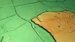 Von der ehemaligen Abschnittsbefestigung sind noch Wall- und Grabenreste erhalten.