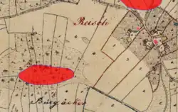 | Erhaltungszustand | Abgegangen, Wälle erhalten | |