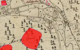 ![]() Lageplan von Abschnittsbefestigung Kesselberg auf dem Urkataster von Bayern | ||