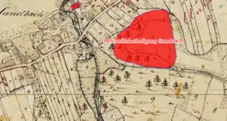 Lageplan der Abschnittsbefestigung Sandbachauf dem Urkataster von Bayern | ||