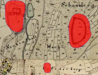 Lageplan der Abschnittsbefestigung Schanzberg auf dem Urkataster von Bayern | ||