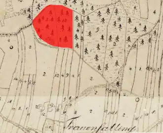 Lageplan des Burgstalls Frauensattling auf dem Urkataster von Bayern | ||