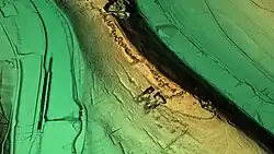 Von der ehemaligen Burganlage sind noch Wall-Grabenreste erhalten.