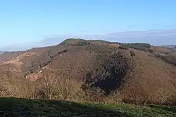 Prähistorischer Abschnittswall auf dem Bergsporn Beurenkern: Blick in den Wallgraben -