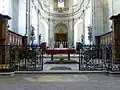 Das Chorgitter mit dem Wappen der benediktinischen Kongregation von Saint-Vanne und Saint-Hydulphe (seit 1965 als Monument historique klassifiziert) trennt das Kirchenschiff vom Vorchor ab.