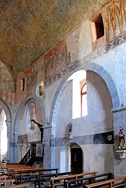 Die Wände oberhalb der Arkadenbögen und das Gewölbe des Hauptschiffs sind üppig mit Fresken bemalt (siehe separaten Abschnitt).