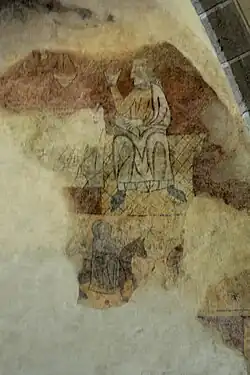 Auf der Wand zum Querschiff und auf der Scheidewand im 3. Joch sind Überreste von Fresken erhalten, die die ältesten der Kirche sein sollen. Sie werden auf das 11. Jahrhundert datiert.[3] Dargestellt wird: Das jüngste Gericht mit seinen Verurteilten und ein schwarzer Teufel. Wenn die Datierung stimmt, deutet sie auf eine sehr frühe Erbauung des Seitenschiffs gegen Ende des 11. Jahrhunderts hin.