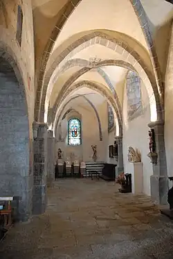 Im Seitenschiff stehen eine Pietà aus dem 16. Jahrhundert flankiert von zwei Heiligenskulpturen und Skulpturen Johannes des Täufers mit seinem Lamm und des heiligen Andreas an einem X-förmigen Kreuz, Andreaskreuz genannt.