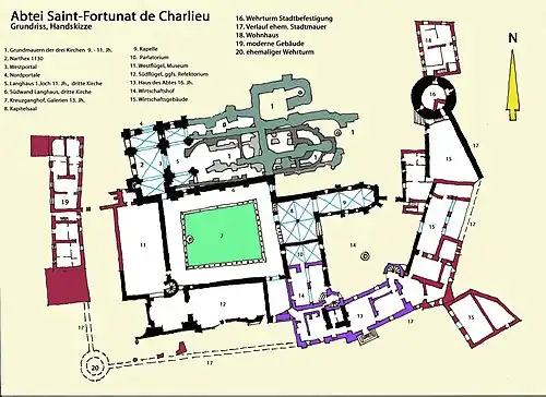 Im Vergleich zu anderen Klöstern der Benediktiner oder Cluniazenser fällt auf, dass sich rund um St-Fortunat eine Siedlung gebildet hat, die auch nach dem Absinken der Bedeutung Clunys weiter wuchs. Denkt man an Semur-en-Brionnais oder an Anzy-le-Duc, so war dort nach dem 12. Jh. Stagnation eingetreten. Charlieu blieb jedoch im 13. und 14. Jahrhundert wirtschaftlich wie militärisch bedeutend.