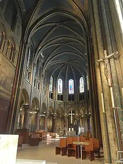 Im 12. Jahrhundert wurde der bisherige Chor durch den heutigen ersetzt, der im Jahre 1163 von Papst Alexander II. geweiht wurde, im selben Jahr wie die Kathedrale Notre-Dame. Die Kreuzrippengewölbe und die Arkade des Chorumgangs sind noch rundbogig. Darüber liegt ein Gangtriforium, dessen Öffnungen zum Binnenchor statt mit Bögen mit waagerechten Architraven schließen, die von korinthischen Säulen gestützt werden. Die Chorobergaden und die rechteckigen Joche des Binnenchors sind schon spitzbogig, die von Rippen stabilisierte Schirm-Halbkuppel der schließenden Apsis jedoch rundbogig. Insofern zeigt sich hier ein romanisch-gotischer Übergangsstil, wiewohl die Kirche als eines der ersten Bauwerke der Gotik gepriesen wird.[1]