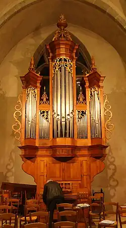 Die ursprüngliche Orgel wurde 1715 von Christophe Moucherel durch eine neue ersetzt. Die Orgel überlebte die Französische Revolution und wurde erst 1890 durch eine neue, neogotische Orgel ersetzt. Diese wurde 1923 überholt und nach dem Zweiten Weltkrieg repariert. Die heutige Orgel in barockisierendem Gehäuse an der Südseite des Chores wurde von Marc Garnier aus Mortreau nach dem Vorbild nordeuropäischer Orgeln des 17. und 18. Jahrhunderts erbaut. Sie wurde im Jahr 1979 gefertigt und im Jahr 1995 renoviert. Die Disposition der zweimanualigen Orgel lautet wie folgt:[3]