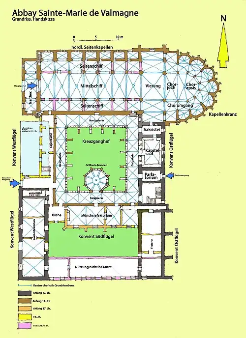 - ↑ Edition Gaud 11, rue Brulard, 77950 Moisenay, Die Abtei von Valmagne. ISBN 2-84080-037-3 Deutsche Ausgabe, Broschüre S. 1–49.