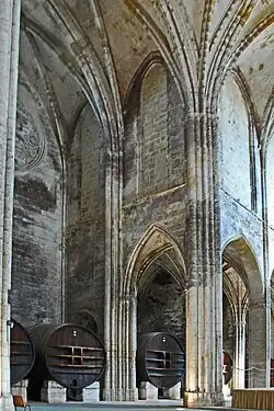 Wie die meisten Klöster Frankreichs wurden Konvent und Kirche mit den noch vorhandenen Ländereien und Dependancen Staatseigentum. Der Staat war allerdings am kostspieligen Unterhalt derartiger Anwesen nicht interessiert und versuchte so schnell wie möglich, Kapital daraus zu schlagen. Am 23. Mai 1791 gab der Bezirk Béziers dem Winzer Monsieur Granier für 130 000 Pfund den Zuschlag. Er erwarb die Konventsgebäude, die Kirche, den Hühnerhof, die Ländereien und das Gut le Sacristain. Der neue Besitzer baute die Kirche in einen Weinkeller um. In die Joche der Seitenschiffe und in die Chorkapellen stellte er riesige Holzfuder aus russischer Eiche, in denen der Wein reifte. Sie sind nunmehr über 200 Jahre an diesem Ort. Dabei wurden in den hohen Arkaden des Mittelschiffs Wände eingezogen, die die Seitenschiffe scheinbar in zwei Geschosse unterteilt haben. Ihre „Brüstungen“ schließen knapp über ihren Bogenansätzen waagerecht ab. Im unteren „Geschoss“ sind große rundbogige Öffnungen ausgespart, die die Weinfässer enger umschließen. Die hohen Seitenschiffe dahinter behielten ihre Höhe.