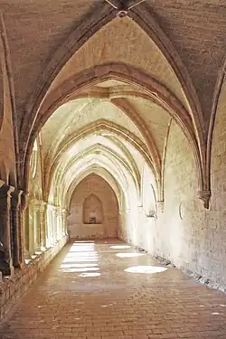 Die äußeren Wände der Süd- und Westgalerie des Kreuzgangs gehören wie die Wand der Nordgalerie zum gotischen Bauabschnitt vom Beginn des 13. Jahrhunderts. So gehört auch die Einwölbung des Kreuzgangs[7] mit Kreuzrippengewölben zu diesem Abschnitt. Die Einwölbung der Südgalerie und Teile der Ostgaleriegewölbe sollen zu Beginn des 14. Jahrhunderts entstanden sein.