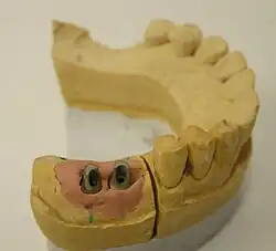 - ↑ I. D. Zinner, P. E. Reid u. a.: Fabrication of maxillary overdenture supported by custom waxed and cast locator abutments: case report. In: The New York state dental journal. Band 79, Nummer 1, Januar 2013, S. 19–22, ISSN 0028-7571. PMID 23513543.