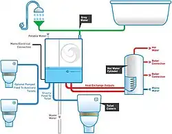 - ↑ Abdur Rehman Mazhar et al.: A Key Review of Non-Industrial Greywater Heat Harnessing. In: Energies. Band 11, 2018, S. 386, doi:10.3390/en11020386.
