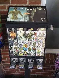 Einige Kaugummihersteller legten ihren Produkten in den 1960er Jahren einfache, zumeist blaue Tattoobilder bei. Anfänglich waren es spiegelverkehrte Motive, die auf eine befeuchtete Stelle der Haut gedrückt wurden und als Abdruck für kurze Zeit sichtbar blieben. Heutige Produkte sind wasser- und mitunter auch seifenfeste Folien, die mit Alkohol oder Öl entfernt werden können.