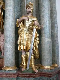 „Achatius von Byzanz“ ist der Schutzpatron der Soldaten. Er wird aber auch gegen Kopfweh, Todesängste, in ausweglosen Lagen und zur Stärkung bei Zweifel angerufen.