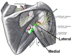 Durch die dreieckige mediale Achsellücke ziehen die Arteria circumflexa scapulae und die Vena circumflexa scapulae.