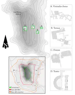 Die Gründung von Acinipo ist noch nicht vollständig erforscht. Erwähnungen bei Plinius und Ptolemäus als zur Belturia Celtica gehörend, lassen auf eine frühere, keltische Besiedelung schließen.[2] Einige Historiker behaupten, die Stadt sei erst nach der Schlacht von Munda (45. v. Chr.) entstanden.[3] Dabei begegneten sich dort die Armeen von Julius Caesar und Titus Labienus sowie den Brüdern Sextus und Gnaeus Pompeius dem Jüngeren. Für Caesar war die Schlacht um Munda eine Säuberungsaktion, um endlich die konservativen Republikaner zu schlagen und den letzten Brennpunkt der Opposition zu vernichten. Später sollte sich aber herausstellen, dass die Lage zwischenzeitlich für Caesar und seine Truppen bedrohlicher war als geplant. So soll er später gesagt haben, dass er gewöhnlich um den Sieg focht, bei Munda aber um sein Leben.