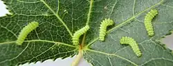 Die Raupen ernähren sich insgesamt von mehreren Nahrungspflanzen, innerhalb einer Region werden jedoch nur ein oder zwei Pflanzenfamilien gefressen. Im Norden wird vor allem Papier-Birke (Betula papyrifera) gefressen, im Süden eher Hickory (Carya), Walnüsse (Juglans), Rhus-Arten, Amerikanische Persimone (Diospyros virginiana) und Amerikanischer Amberbaum (Liquidambar styraciflua).[1]