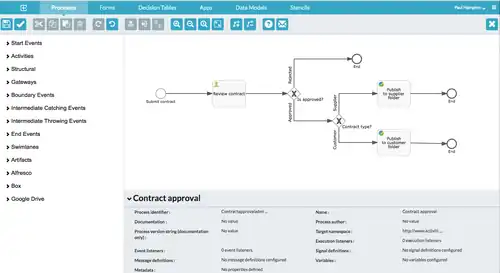 - Activiti Modeler, ein webbasiertes grafisches Werkzeug zur Definition von BPMN-2.0-Workflows, basierend auf Signavio.