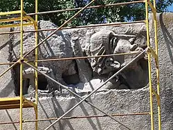Anfang 1982 beschlossen die örtlichen Behörden jedoch, die Arbeiten an der Mauer abzubrechen und mehrere hundert Quadratmeter fertiger Skulpturen mit Beton zu begießen.[5][6]