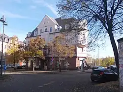 6. Eintrag in der Denkmaldatenbank des Landes Sachsen zur Denkmal-ID 09206451 (PDF, inklusive Kartenausschnitt) – Mietshaus in halboffener Bebauung in Ecklage. Abgerufen am 22. April 2022.