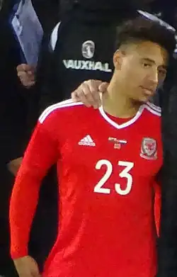 Erst am 13. November 2015 bestritt er dann – nachdem sich die Waliser ohne seine Mitwirkung erstmals für eine EM-Endrunde qualifiziert hatten – mit 21 Jahren sein erstes Länderspiel mit der A-Nationalmannschaft. Beim Freundschaftsspiel gegen die Niederlande, das mit 2:3 verloren wurde, wurde er in der 66. Minute für Chris Gunter eingewechselt, den Waliser mit den meisten Länderspieleinsätzen der derzeit aktiven Spieler.[7] Er wurde dann auch beim übernächsten Spiel wieder eingewechselt, diesmal nach 72 Minuten. Am 9. Mai 2016 wurde er in den vorläufigen Kader für die EM 2016 berufen, mit dem am 23. Mai ein Trainingslager in Portugal begann.[8][9] Er wurde dann aber letztlich nicht für den endgültigen Kader und auch danach nicht berücksichtigt.