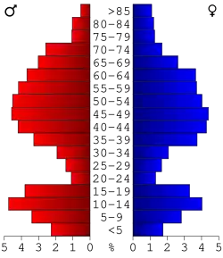 23,9 Prozent der Bevölkerung waren unter 18 Jahre alt, 4,6 Prozent zwischen 18 und 24 Jahre, 22,6 Prozent zwischen 25 und 44 Jahre, 32,7 Prozent zwischen 45 und 64 Jahre. 16,1 Prozent waren 65 Jahre oder älter. Das Durchschnittsalter betrug 44 Jahre. Auf 100 weibliche Personen kamen 105,4 männliche Personen. Auf 100 Frauen im Alter von 18 Jahren und darüber kamen 102,1 Männer.
