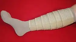 - ↑ G. Mosti et al.: Adjustable Velcro Compression Devices are More Effective than Inelastic Bandages in Reducing Venous Edema in the Initial Treatment Phase: A Randomized Controlled Trial in European Journal of Vascular and Endovascular Surgery, 50 2015, Seite 368 - Seite 374, doi:10.1016/j.ejvs.2015.05.015