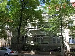 Die Einfriedung des Vorgartens nimmt die Gestaltung des Hauses auf. Unmittelbar nördlich grenzt das gleichfalls denkmalgeschützte Haus Adelheidstraße 12a an.