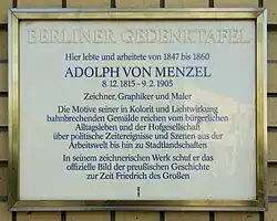 - ↑ Ilse Kleberger: Adolph Menzel. Preuße, Bürger und Genie. dtv 1984, S. 37.